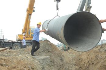 8月31日中上午11時(shí)許,天氣陰冷,烏云低垂,一場(chǎng)大雨即將來臨。在內(nèi)環(huán)南路-沿江大道段供水管網(wǎng)施工工地上,卻是一派機(jī)器轟鳴、熱火朝天的施工景象。襄陽中環(huán)水務(wù)供水工程有限公司第五項(xiàng)目部施工員王俊,正和另外5名施工員一起,鋪設(shè)內(nèi)環(huán)南路-沿江大道長(zhǎng)達(dá)3.2公里、直徑1.2米的供水主管網(wǎng),解決余家湖片區(qū)居民家中水壓低的問題。
