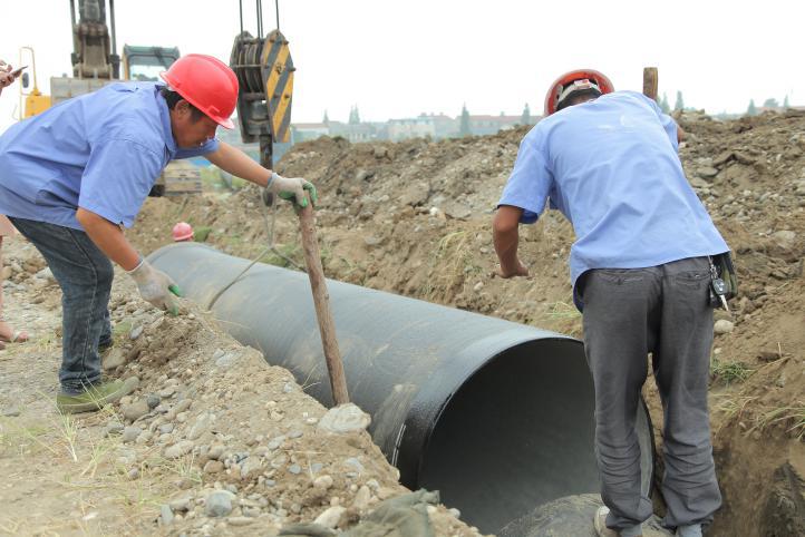 一截管道安裝完畢,王俊鉆進(jìn)了管道中,沿著新鋪設(shè)的這截6米長(zhǎng)的管道,一邊爬一邊觀察,檢查管道接口處的皮圈是否有縫隙,有沒有受擠壓而外露。見皮圈處平整無縫,王俊才放心地爬了出來。盡管當(dāng)天氣溫不高,但管道中密不透風(fēng),讓人喘不過氣,一趟爬下來,王俊的腦門上布了一層細(xì)細(xì)的汗珠。