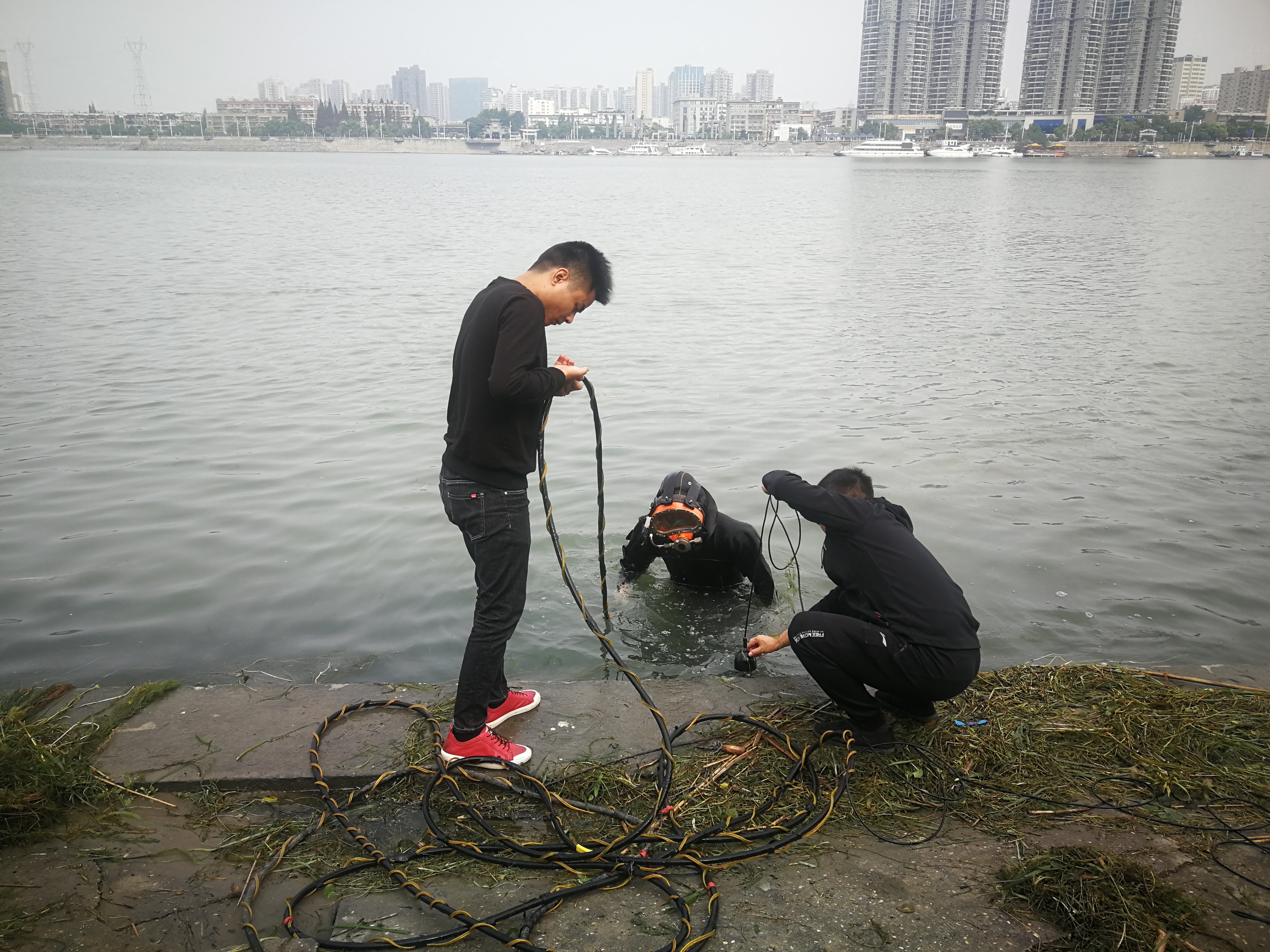 針對此情況,襄陽中環(huán)水務(wù)有限公司不分晝夜采取應(yīng)急措施,一方面及時調(diào)整制水工藝,增強了對凈水構(gòu)筑物的沖洗及排泥頻率,強化對源水和出廠水的檢測,科學把控藥劑的投藥量,另一方面,聘請了專業(yè)蛙人24小時待命,及時對取水口雜草進行清除,保障取水安全。