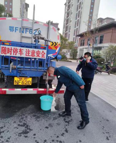 “漢江水畔小區(qū)一千多戶住戶,是否還需要安排其他同志配合?”“我一個(gè)人能行!”東所抄表班班長(zhǎng)黨員劉凱接到任務(wù)后便立馬動(dòng)身前往小區(qū),為了減少接觸,他與物業(yè)公司就怎樣通知小區(qū)業(yè)主有序下來接水進(jìn)行了溝通,與司機(jī)黨員胥紅杰將送水車輛停在物業(yè)公司指定點(diǎn)位后,一個(gè)單元一個(gè)單元的為用戶送水,于18時(shí)順利完成送水任務(wù),他們的暖心服務(wù)與快速行動(dòng)得到了居民和小區(qū)物業(yè)的一致肯定。